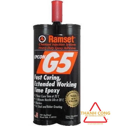 - Ramset Epcon G5 là loại keo epoxy hai thành phần cường độ cao đáp ứng nhu cầu neo, cấy cốt thép và thanh ren vào hầu hết các loại vật liệu nền như bê tông, đá tự nhiên…