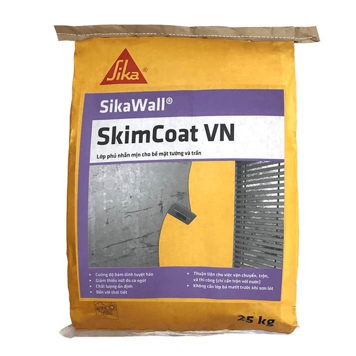 SikaWall SkimCoat VN là vật liệu phủ bề mặt cao cấp gốc xi măng được thiết kế với công thức đặc biệt dùng để làm lớp phủ cho các bề mặt tường và trần. Sau khi thi công thì tạo thành lớp phủ kiến trúc nhẵn mịn, có độ bám dính tuyệt hảo và phù hợp cho việc thi công cho các hạng mục trong nhà cũng như ngoài trời.